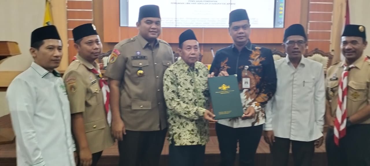 Bupati Jepara Witiarso Utomo memutuskan tetap menerapkan kebijakan enam hari sekolah. Ada sejumlah pertimbangan yang melatari langkah itu, mulai dari pijakan regulasi hingga adanya hasil penelitian terkait dampak negatif yang muncul seiring lima hari sekolah.
