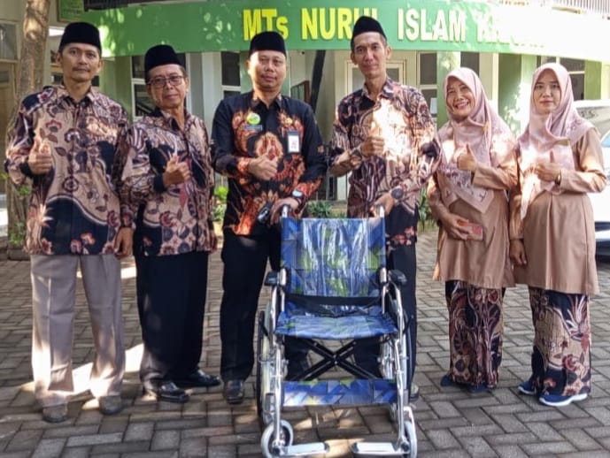 Jepara (Humas Kemenag) — Kantor Kementerian Agama Kabupaten Jepara melalui Unit Pengumpul Zakat (UPZ) menyalurkan bantuan sosial berupa satu unit kursi roda kepada siswa difabel di MTs Nurul Islam Kriyan, Kecamatan Kalinyamatan, Kabupaten Jepara, pada Kamis (16/10/2025).