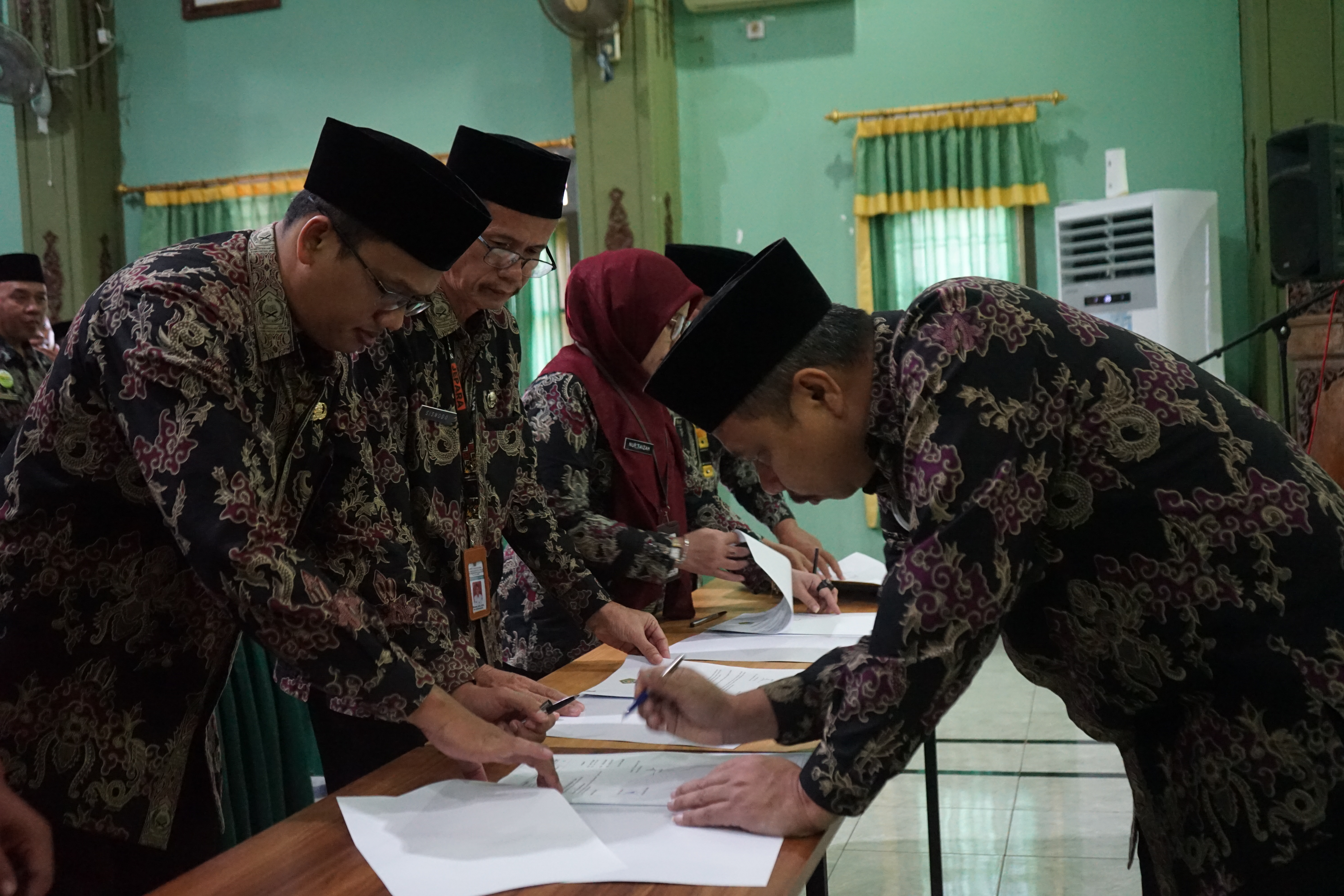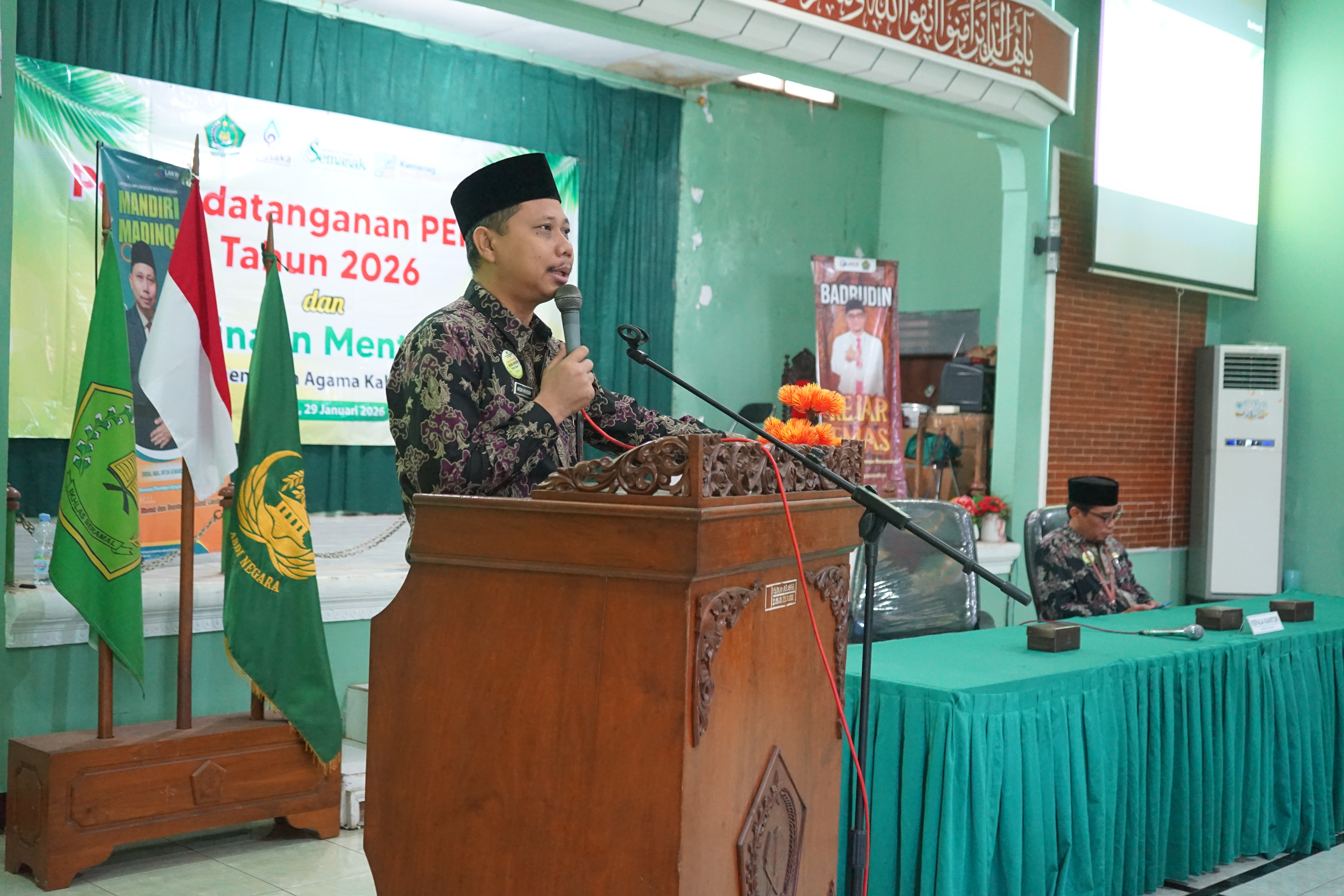 Jepara – Kantor Kementerian Agama Kabupaten Jepara menggelar acara penandatanganan Perjanjian kinerja (Perkin) tahun 2026 dan pembinaan mental ASN sebagai upaya memperkuat komitmen kinerja sekaligus integritas spiritual seluruh pegawai di lingkungan Kankemenag kabupaten Jepara. Acara bertempat di Aula 1 Kankemenag Jepara, Kamis (29/1). Hadir dalam acara tersebut kasubbag TU, Kasi, Gara, Kepala Madrasah, serta seluruh ASN di lingkungan Kankemenag kabupaten Jepara.