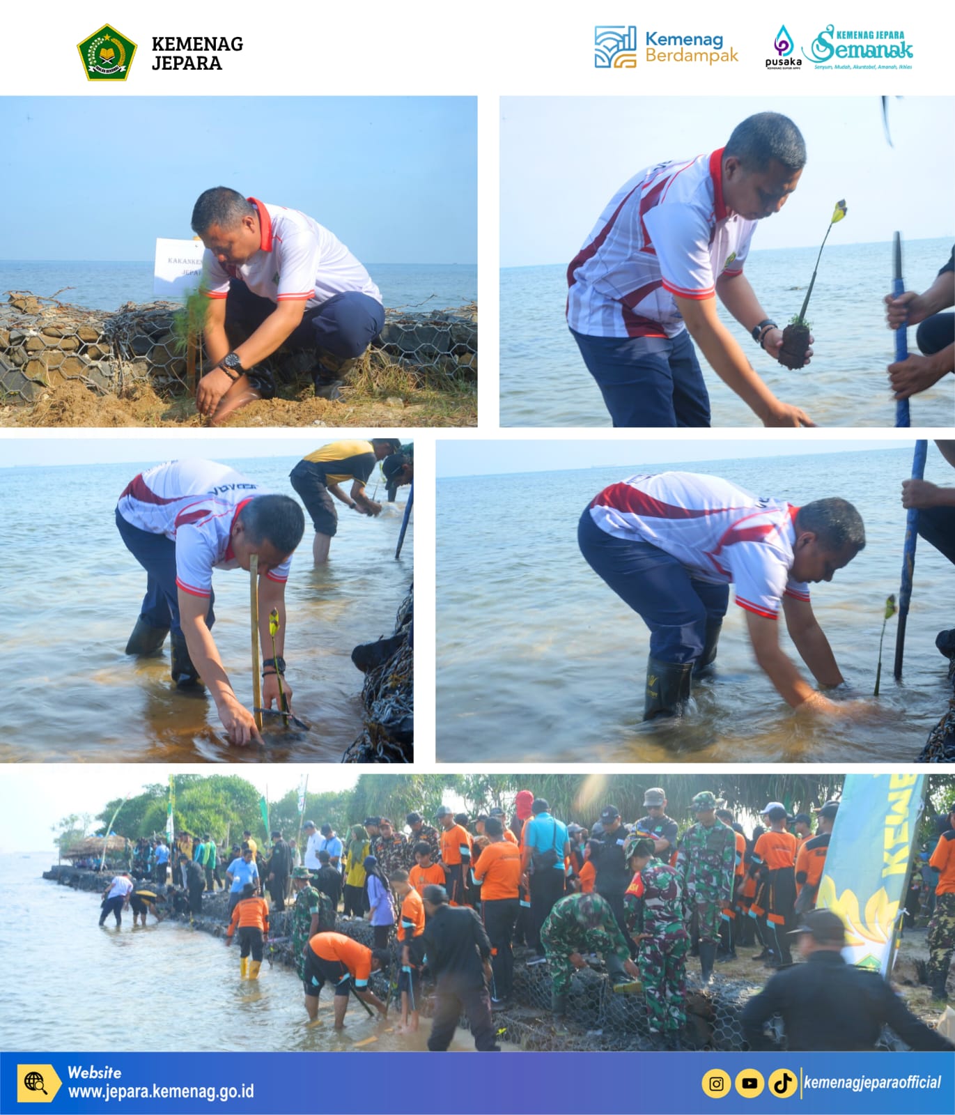 Jepara — Dalam rangka memperingati Hari Santri Nasional dan Hari Amal Bhakti (HAB) Kementerian Agama RI ke-80, Kantor Kementerian Agama Kabupaten Jepara menggelar rangkaian kegiatan apel, penanaman mangrove, dan aksi bersih-bersih rumah ibadah yang dipusatkan di kawasan Pantai Empu Rancak, Mlonggo, Jepara, pada Jumat (17/10/2025).