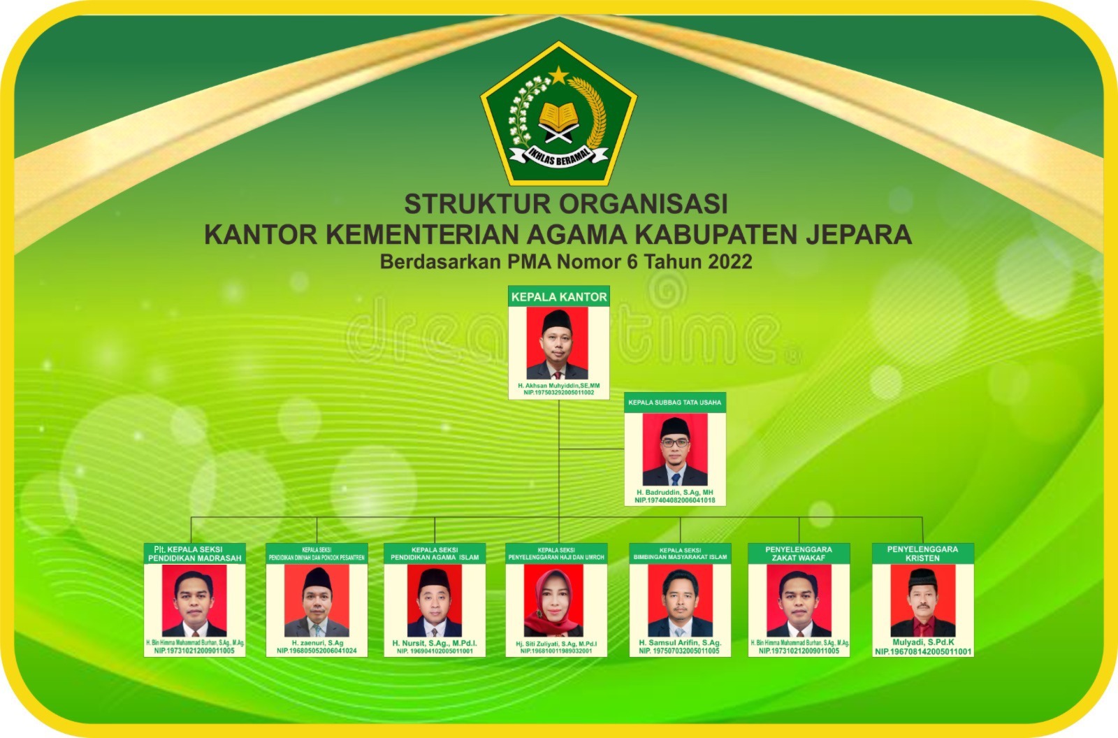 Berikut ini adalah struktur organisasi di Kantor Kementerian Agama Kabupaten Jepara.